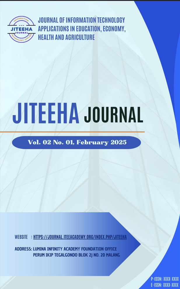 The Journal of Information Technology Applications in Education, Economy, Health and Agriculture (JITEEHA), published by the Lumina Infinity Academy Foundation, was established in January 2024. JITEEHA is a rigorously reviewed, double-blind peer-reviewed journal committed to publishing high-quality articles. The focus of the journal encompasses the innovative application of information technology across various sectors including educational technology and management, economic systems, business, finance, healthcare, and agriculture.